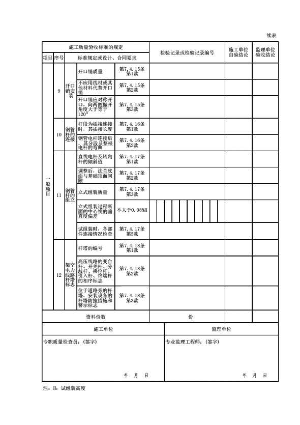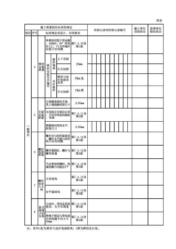 表格名称:09020303 杆塔组立、横担组装及绝缘子安装检验批质量验收记录