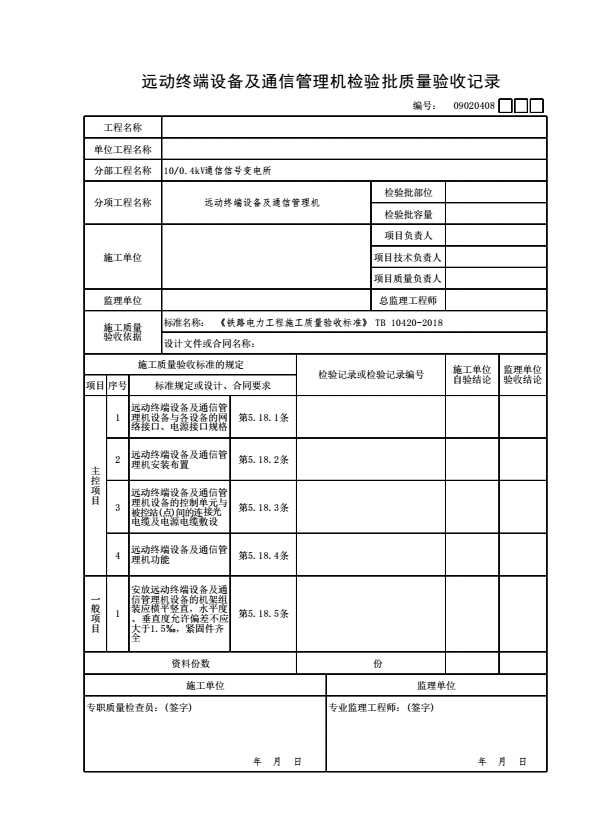表格名称:09020408 远动终端设备及通信管理机检验批质量验收记录