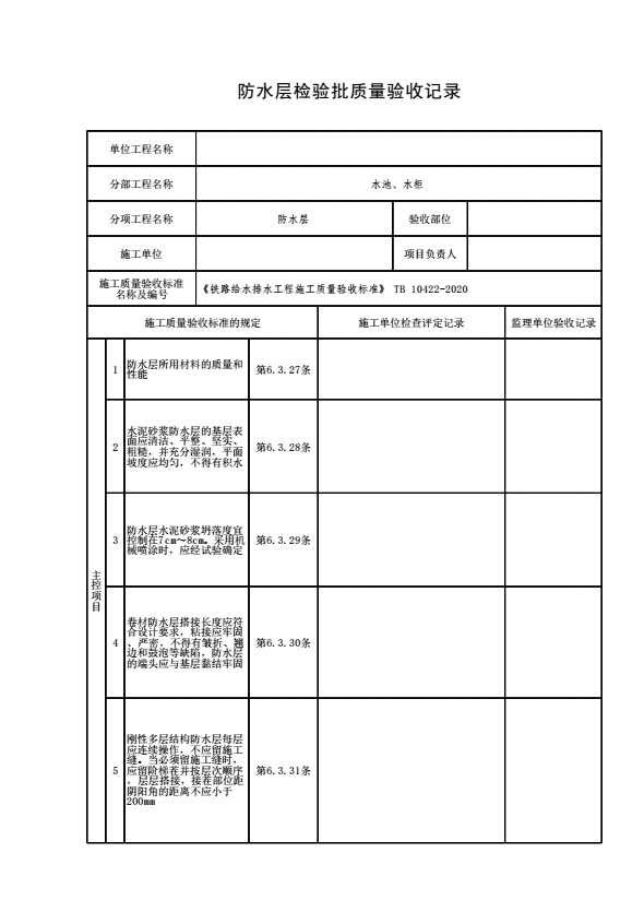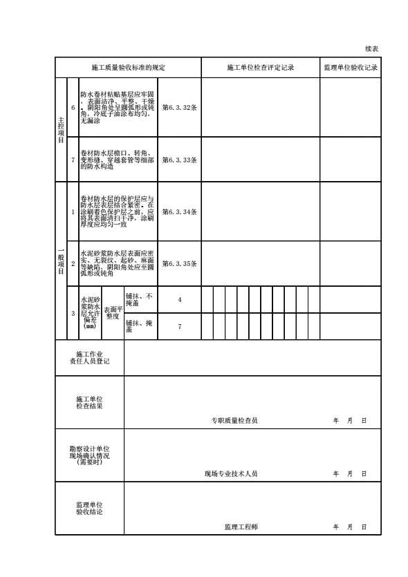 表格名称:防水层检验批质量验收记录