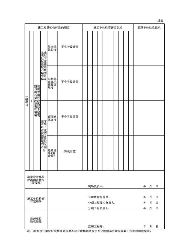 表格名称:G02012505 路堑与隧道级配碎石过渡段检验批质量验收记录