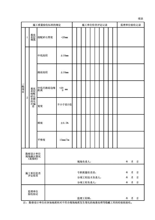表格名称:G02012602 级配碎石填筑检验批质量验收记录