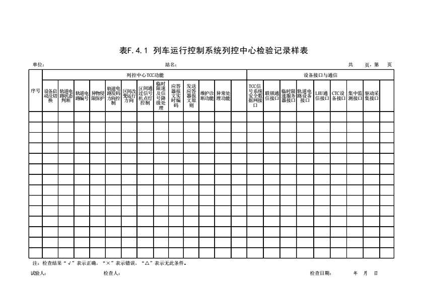 表格名称:表F.4.1 列车运行控制系统列控中心检验记录样表