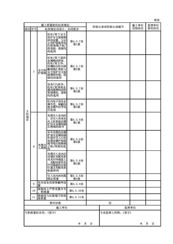 表格名称:G08050104 防雷及接地检验批质量验收记录表