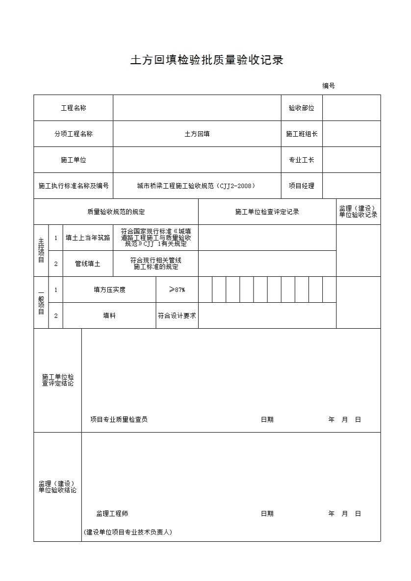 城市桥梁工程施工质量验收表格(CJJ2-2008)