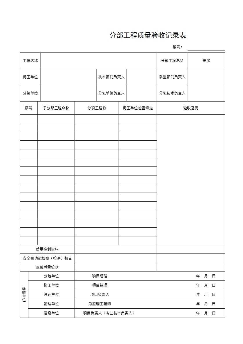 表格名称:泵房