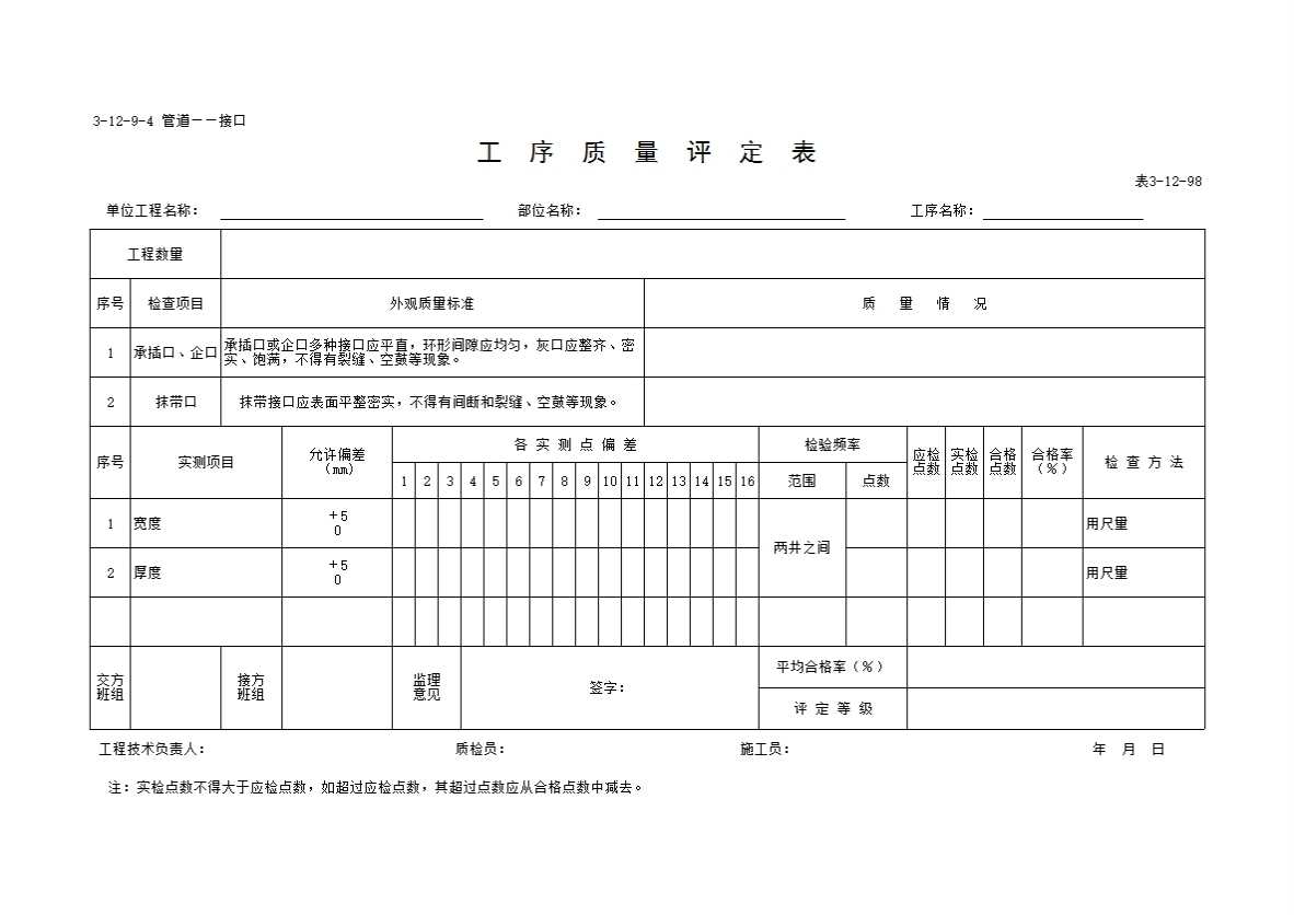 CJJ1-90/CJJ2-90/CJJ3-90 工序评定表