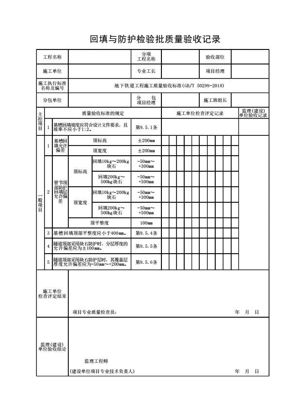 表格名称:回填与防护检验批质量验收记录