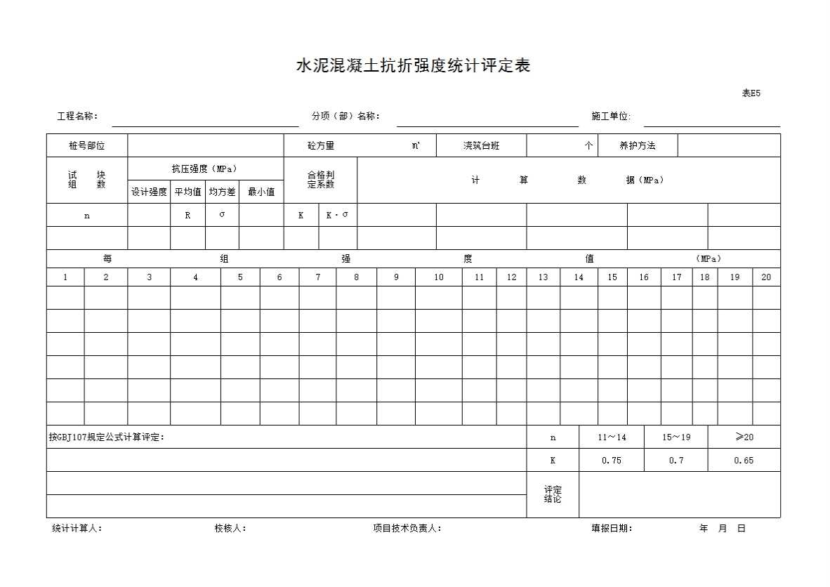 表格名称:表E5 水泥混凝土抗折强度统计评定表