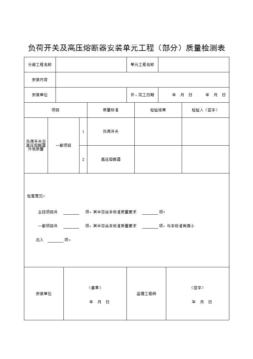 表格名称:负荷开关及高压熔断器安装单元工程(部分)质量检测表1