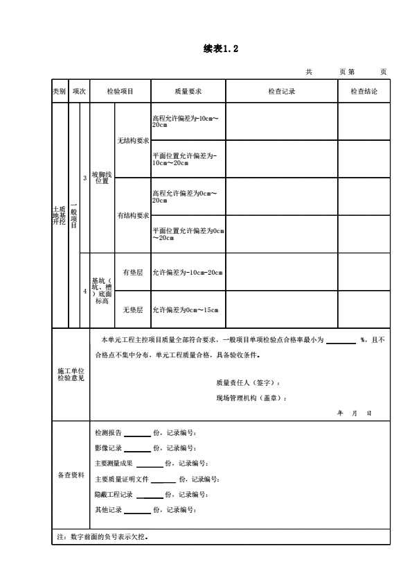 表格名称:表1.2 土质地基开挖单元工程施工质量检验表