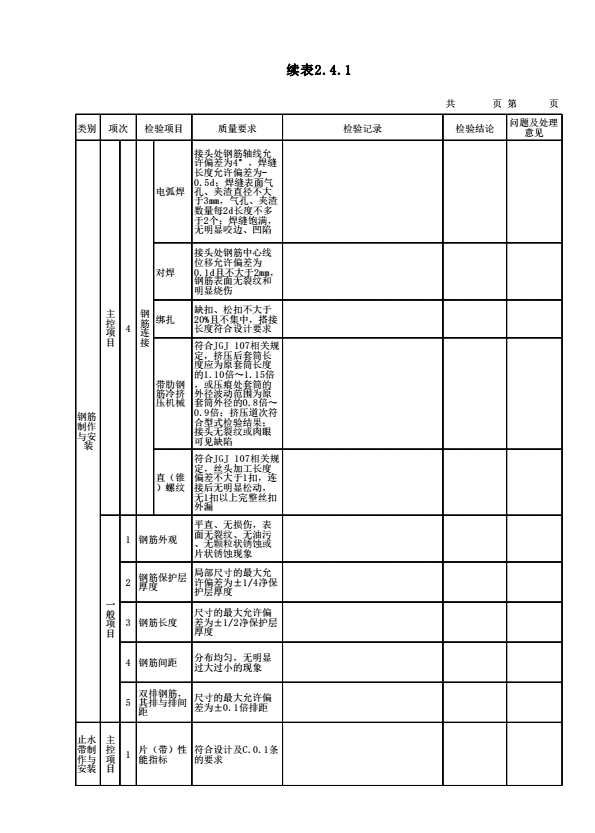 表2.4.1 混凝土面板备仓工序施工质量验收表