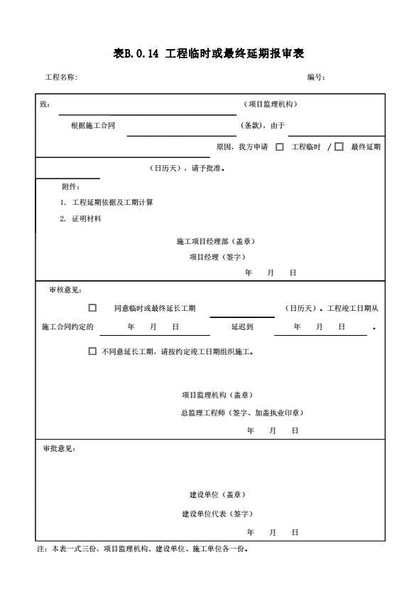 表格名称:表B.0.14 工程临时或最终延期报审表
