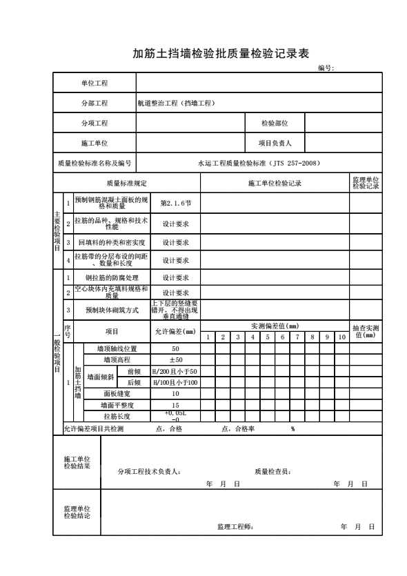 表格名称:加筋土挡墙检验批质量检验记录表(修订)