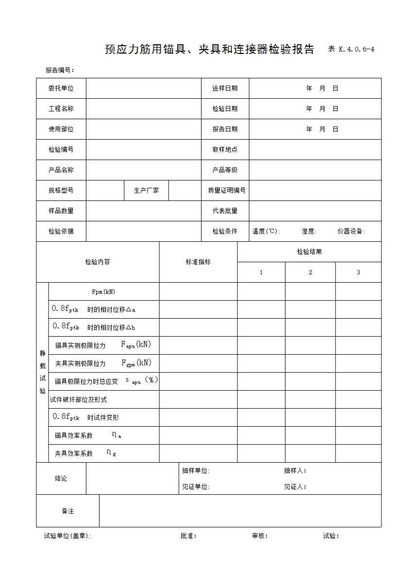 表格名称:表K.4.0.6-4 预应力筋用锚具、夹具和连接器检验报告