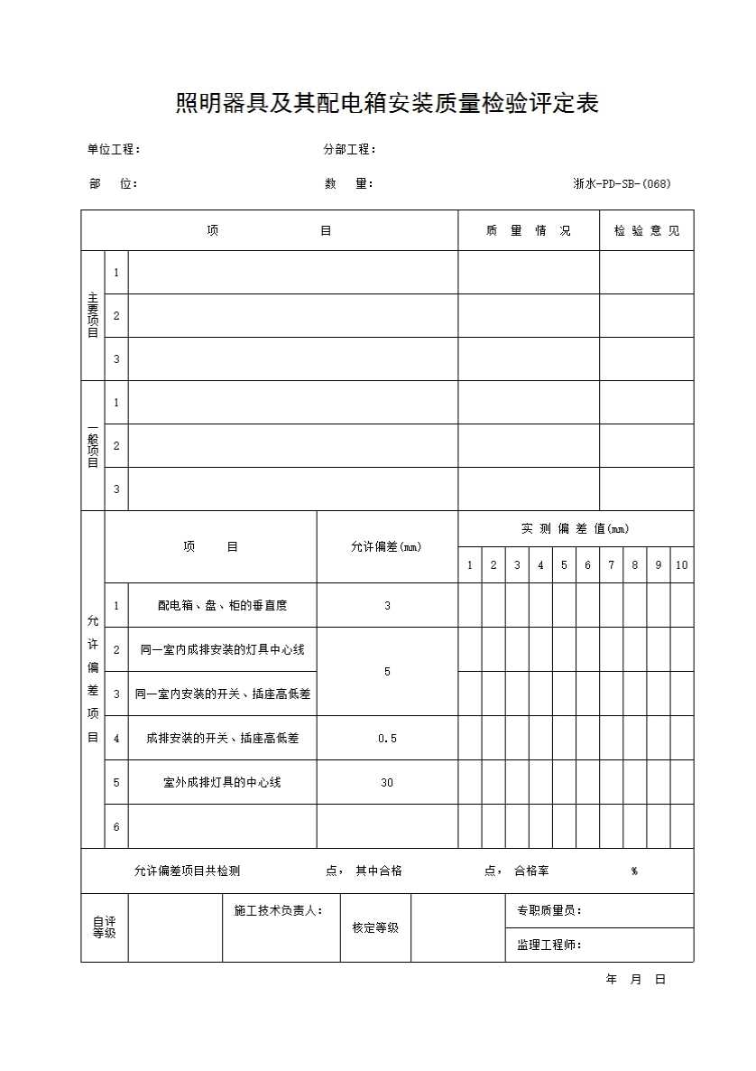 表格名称:068 照明器具及其配电箱安装质量检验评定表