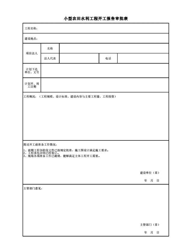 第一节 小型农田水利工程开工报告审批表
