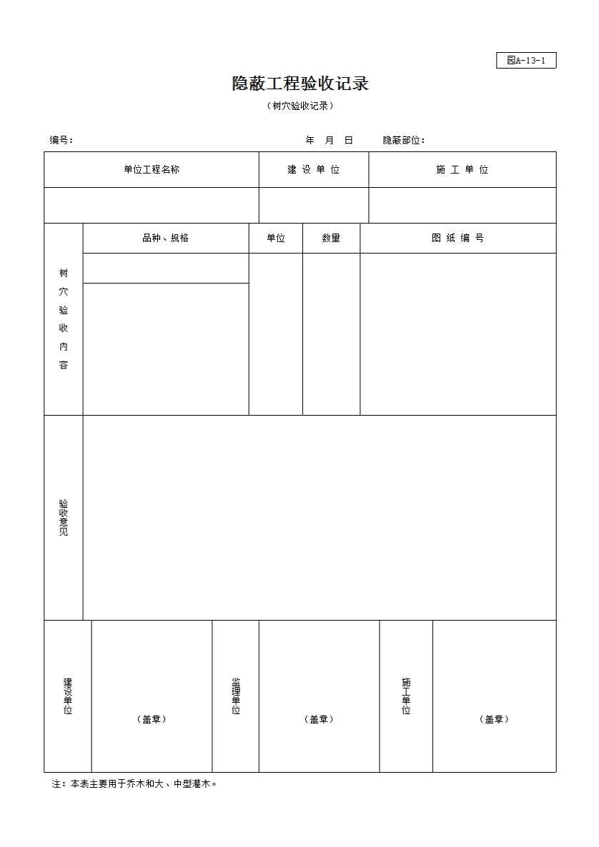 树穴——隐蔽工程验收记录