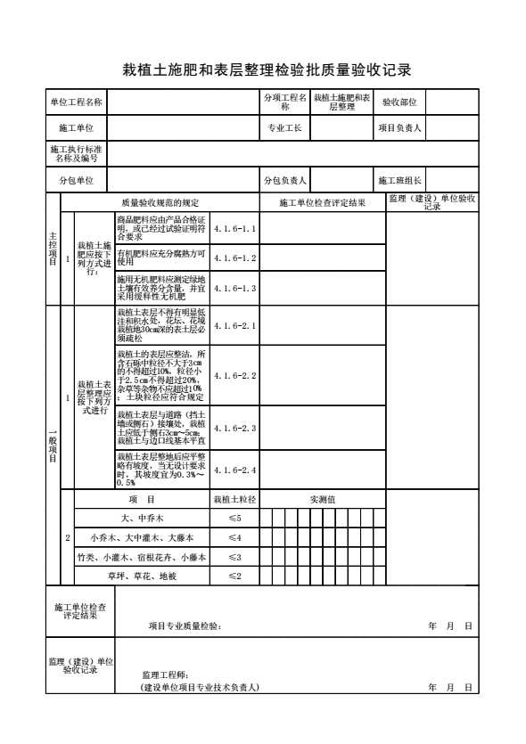 表格名称:栽植土施肥和表层整理检验批质量验收记录
