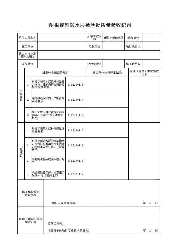表格名称:耐根穿刺防水层检验批质量验收记录