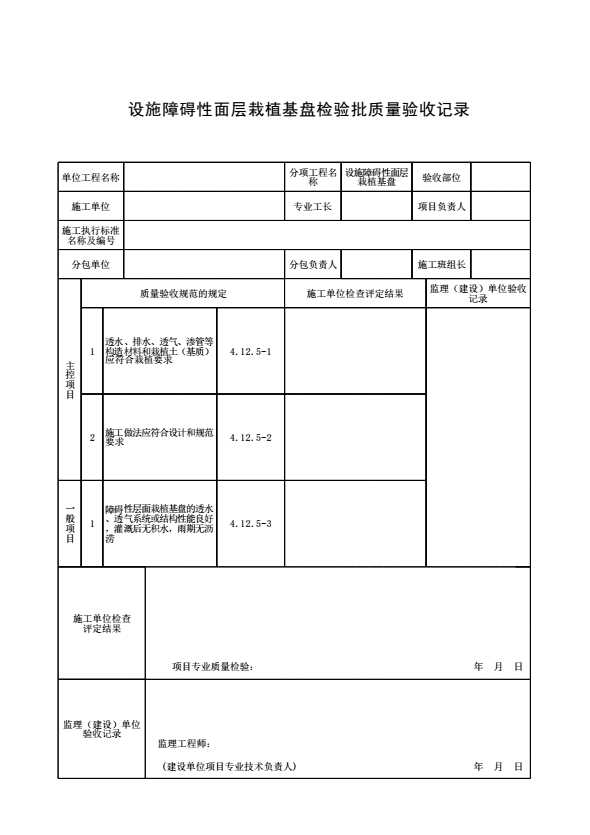 表格名称:设施障碍性面层栽植基盘检验批质量验收记录