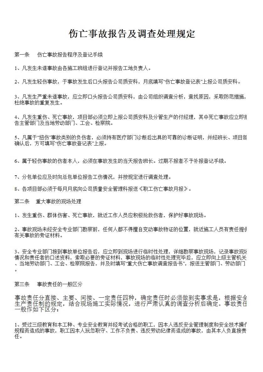 表格名称:伤亡事故报告及调查处理规定(项目部)