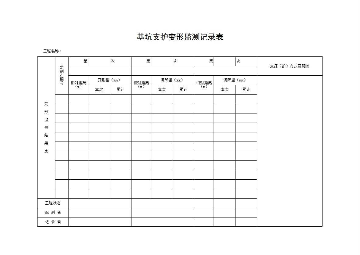表格名称:基坑支护变形监测记录表