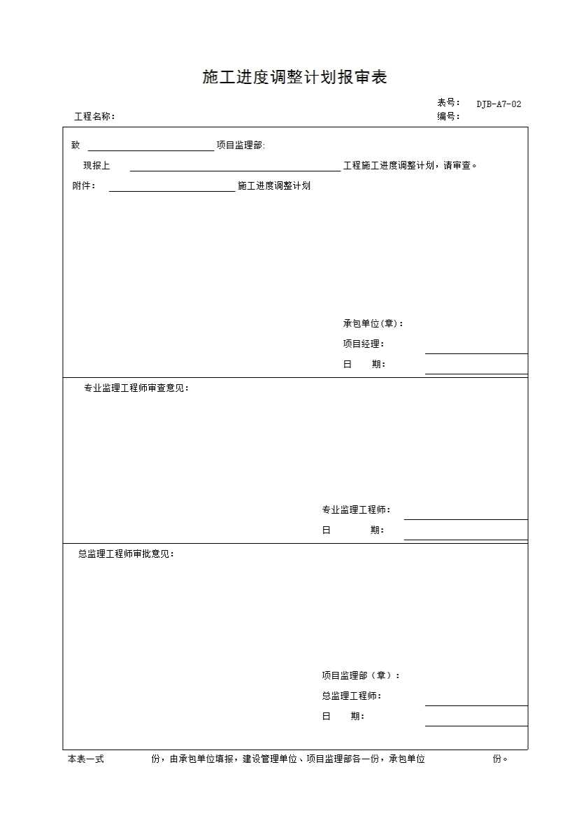 表格名称:DJB-A7-02 施工进度调整计划报审表