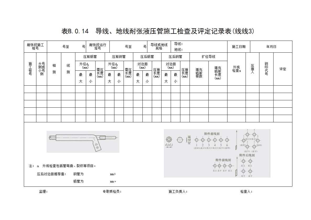 表B.0.14 导线、地线耐张液压管施工检查及评定记录表(线线3)