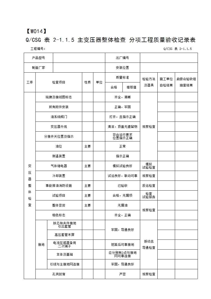 QCSG 表 2-1.1.5 主变压器整体检查 分项工程质量验收记录表