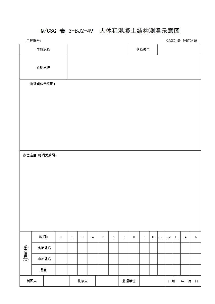 表格名称:QCSG 表 3-BJ2-49 大体积混凝土结构测温示意图