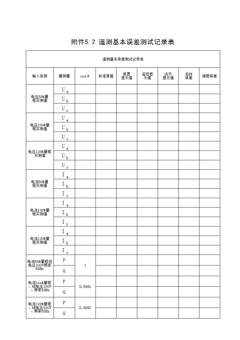表格名称:附件5.2 遥测基本误差测试记录表