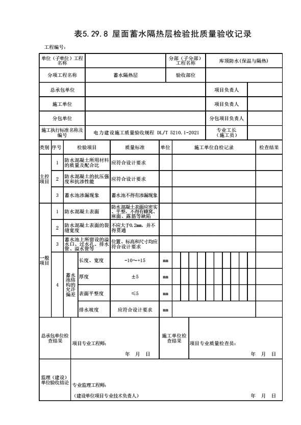 表格名称:表5.29.8屋面蓄水隔热层检验批质量验收记录