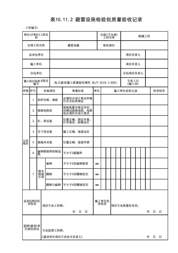 表格名称:表10.11.2避雷设施检验批质量验收记录