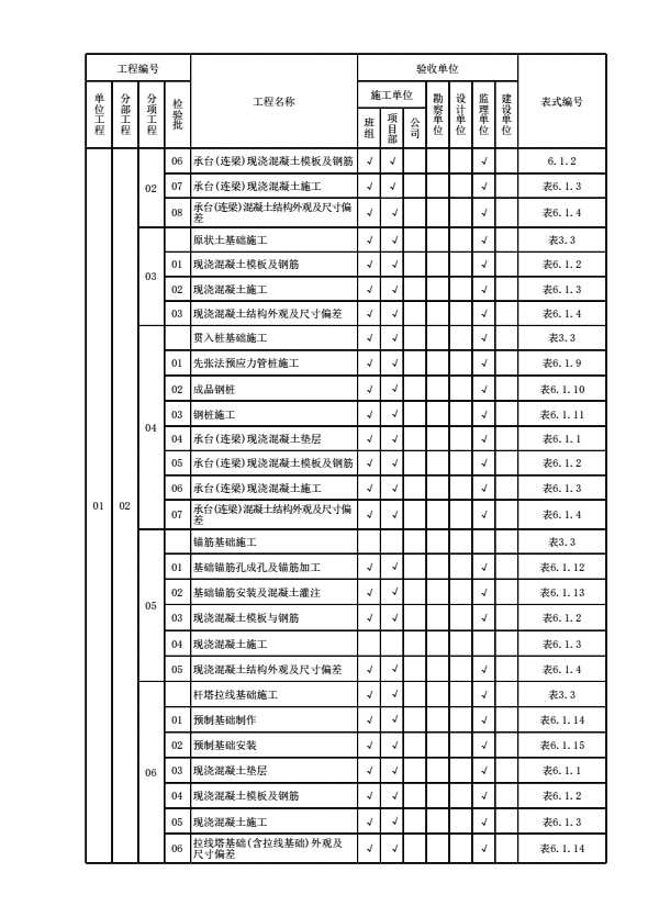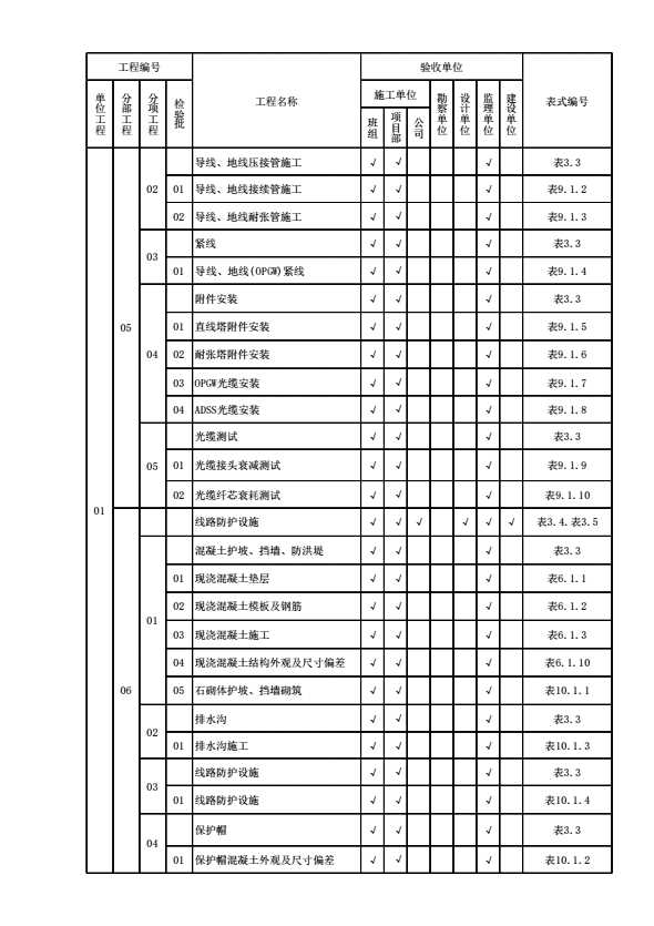 表格名称:表4.1 架空输电线路工程质量验收范围表