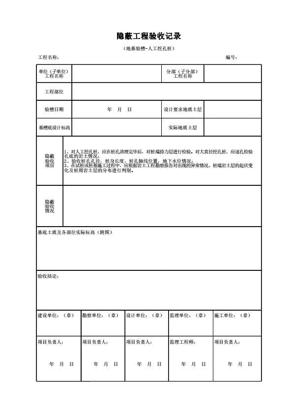 表格名称:隐蔽工程验收记录(地基验槽-人工挖孔桩)