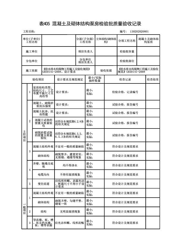 表格名称:130202020801 混凝土及砌体结构泵房检验批质量验收记录