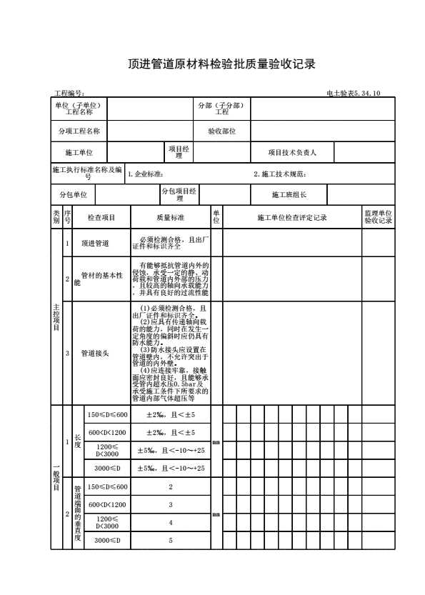 表格名称:电土验表5.34.10 顶进管道前原材料检验批质量验收记录