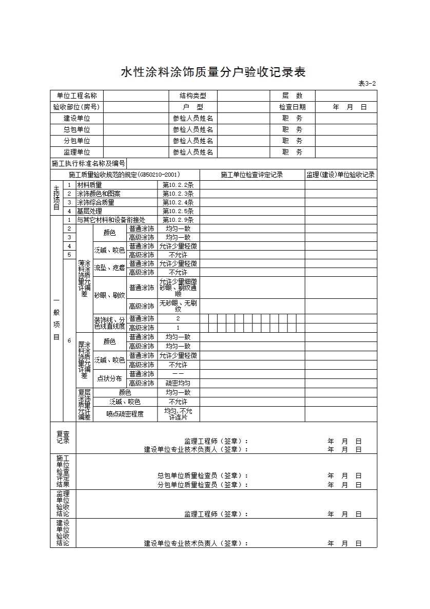 表格名称:3-2水性涂料涂饰质量分户验收记录表