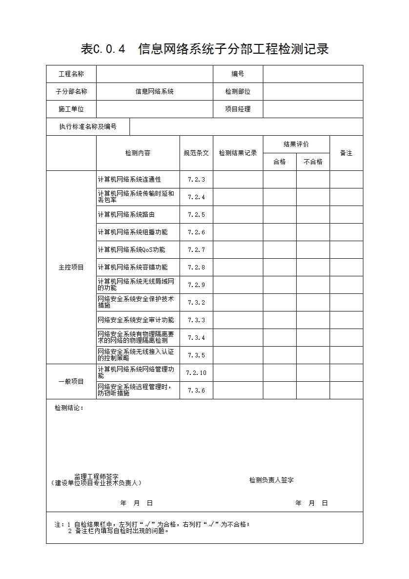 表格名称:表C.0.4 信息网络系统子分部工程检测记录