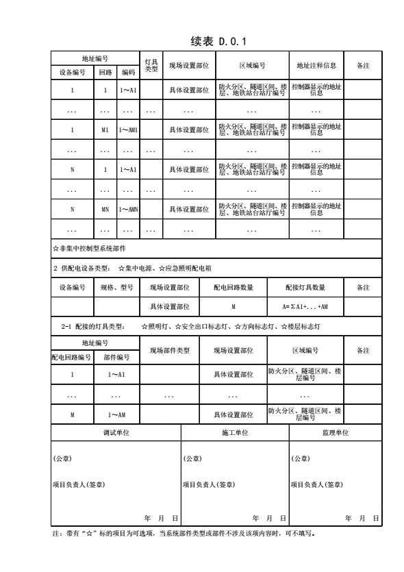 表格名称:表D.0.1 系统部件现场设置情况记录