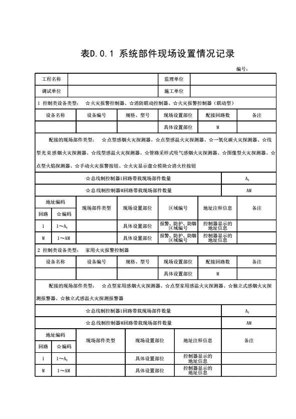 表格名称:表D.0.1 系统部件现场设置情况记录