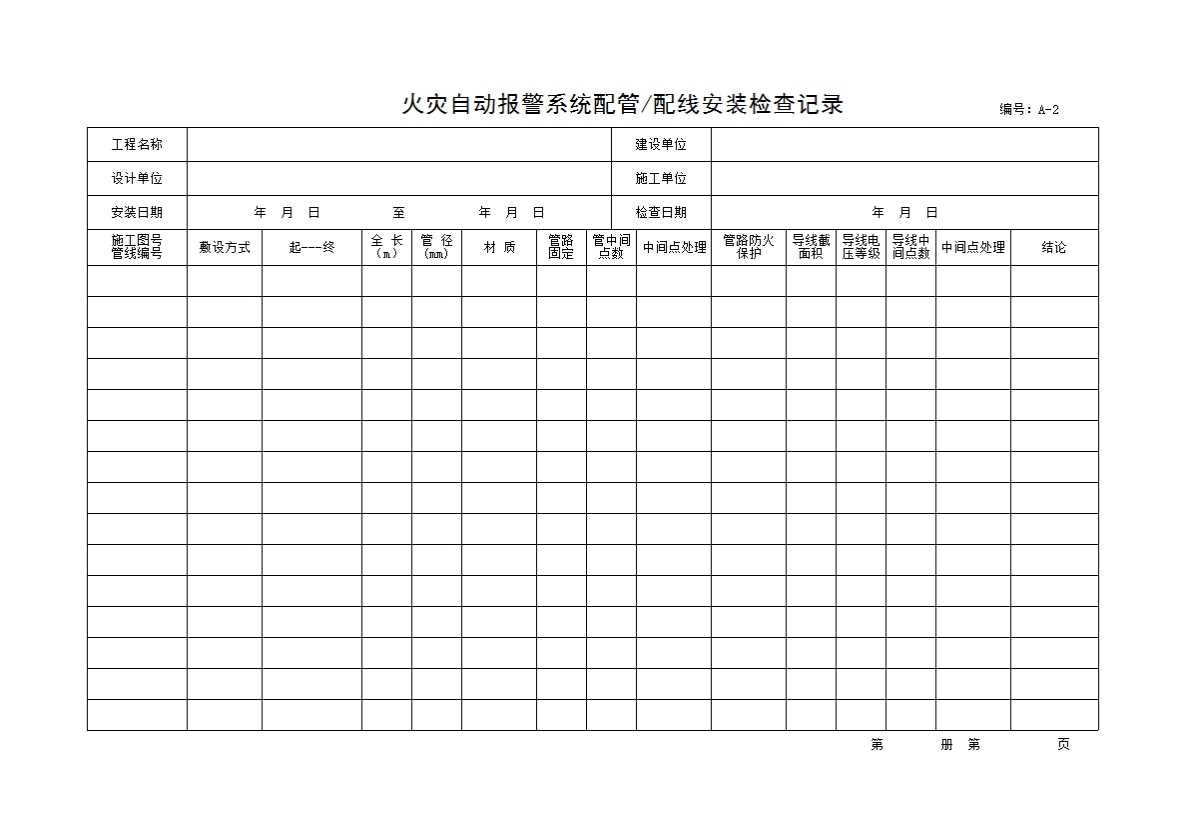 表格名称:火灾自动报警系统配管/配线安装检查记录