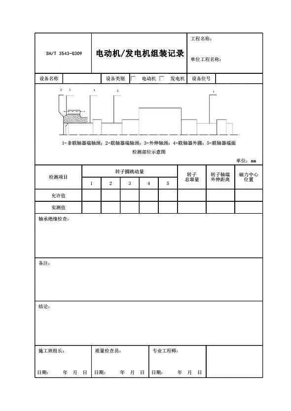 表格名称:SH/T 3543-G309 电动机/发电机组装记录