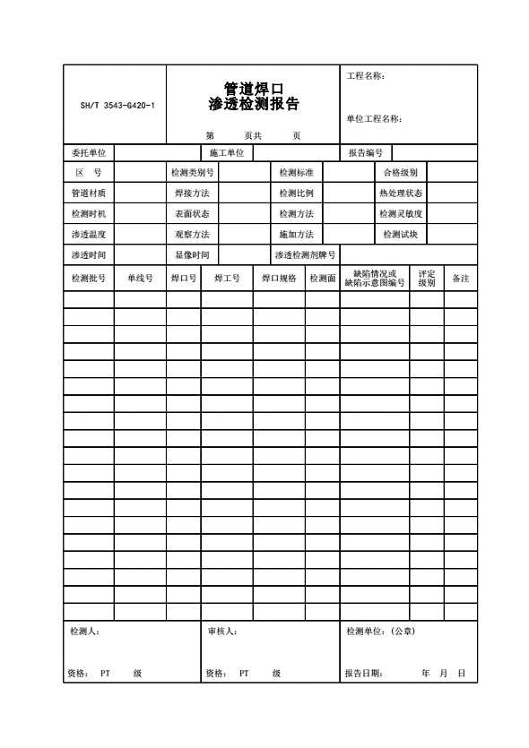表格名称:SH/T 3543-G420-1 管道焊口渗透检测报告