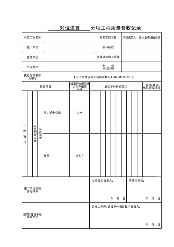 表格名称:对位装置分项工程质量验收记录