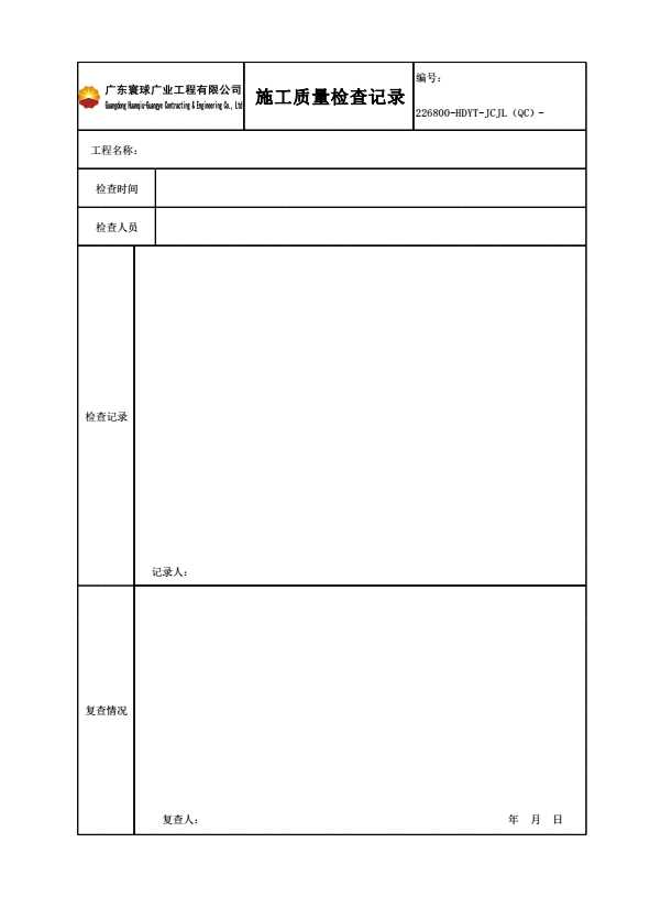 表格名称:11 施工质量检查记录