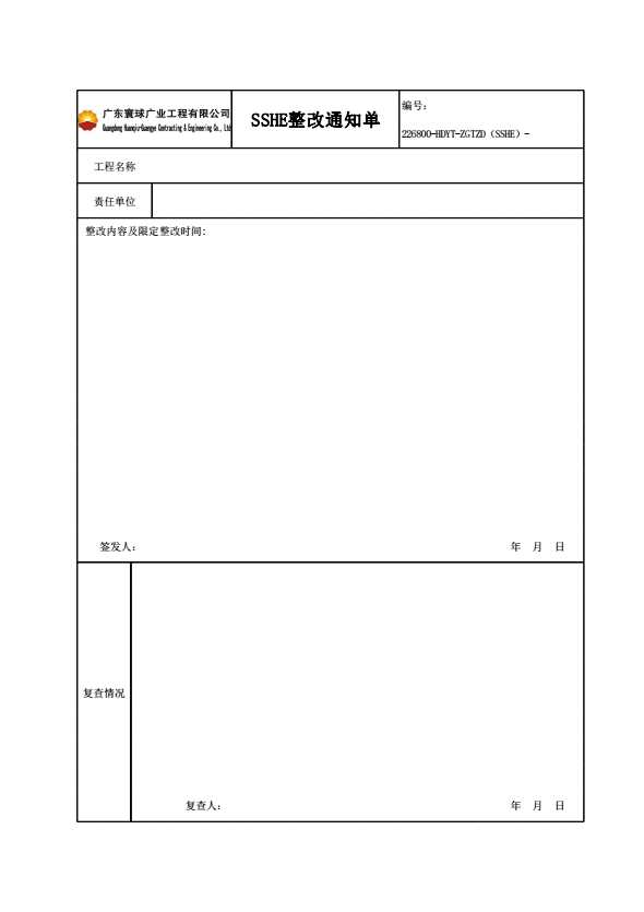 表格名称:SSHE整改通知单