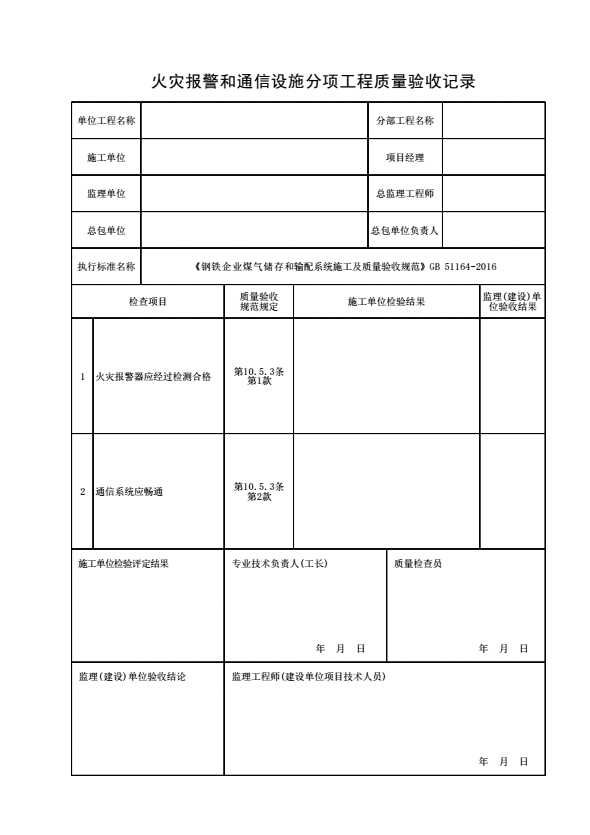 表格名称:火灾报警和通信设施分项工程质量验收记录