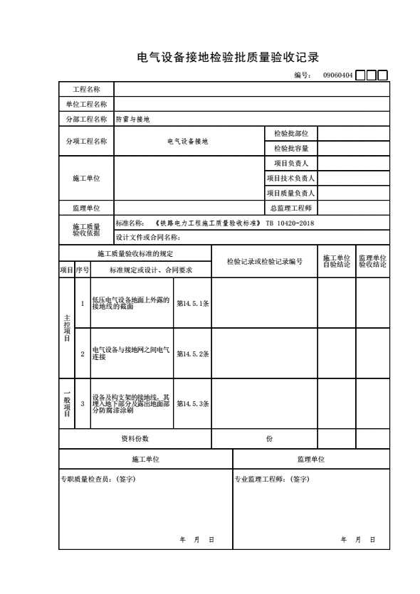 表格名称:09060404 电气设备接地检验批质量验收记录