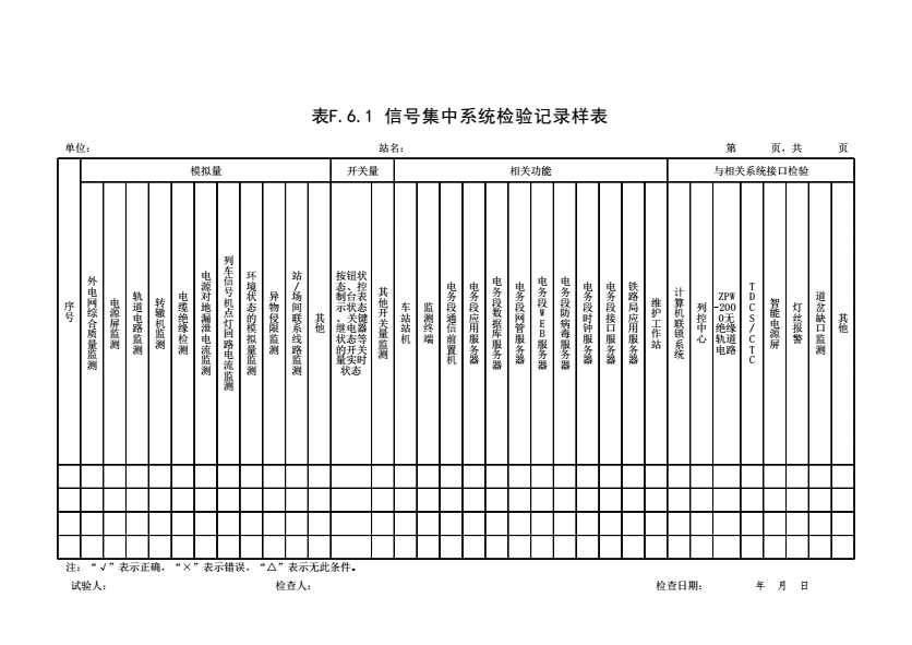 表格名称:表F.6.1 信号集中监测系统检验记录样表